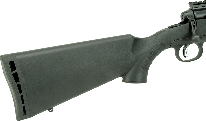 - Rugged black synthetic stock