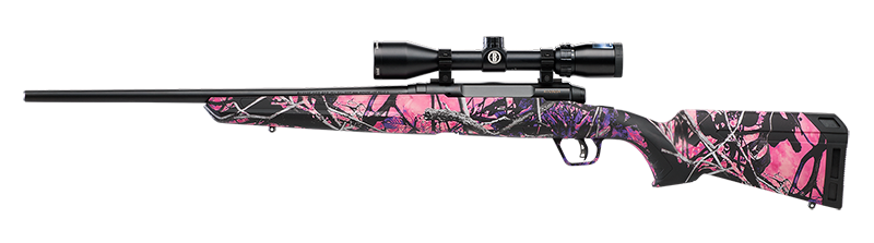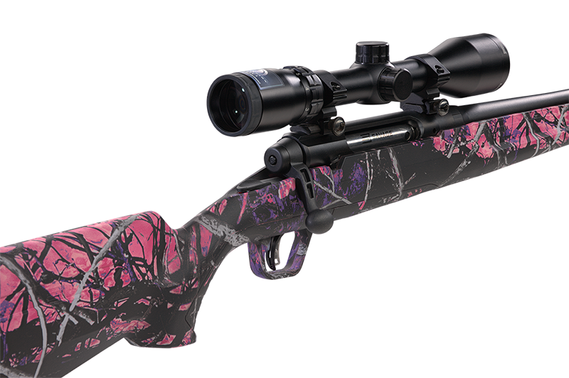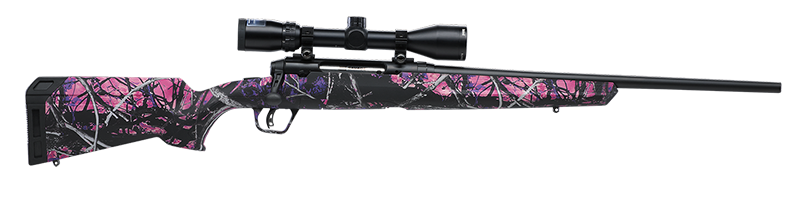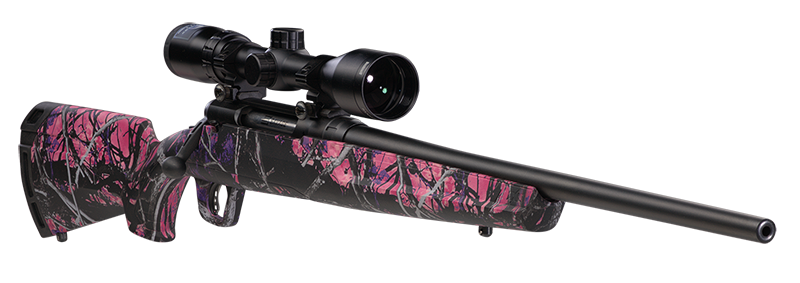 The redesigned AXIS II XP Compact Muddy Girl offers smaller-framed hunters even better out-of-the-box performance at the same affordable price. In addition to improved ergonomics, the package rifle is loaded with features that deliver tack-driving accuracy on every shot, including the user-adjustable AccuTrigger™, thread-in headspacing, and a factory-mounted, bore-sighted Bushnell® Banner 3-9x40mm scope. The 20-inch button-rifled barrel is a perfect match for the Muddy Girl Camo stock.