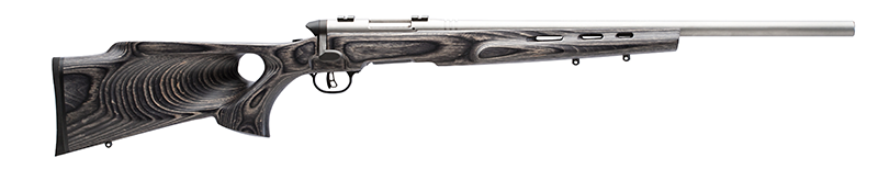 Designed specifically for the red-hot, flat-shooting 17 Win. Super Magnum cartridge, the B.MAG Target represents a whole new class of rimfire rifle. Thread-in barrel headspacing, rear-locking lugs and a cock-on-close bolt maximize accuracy at long ranges, while user-adjustable AccuTriggerâ„¢ technology allows crisp, customized trigger pulls. Added features include a stainless steel heavy barrel, gray laminate thumbhole stock, compact action, center-feed rotary magazine, and soft rubber butt pad.