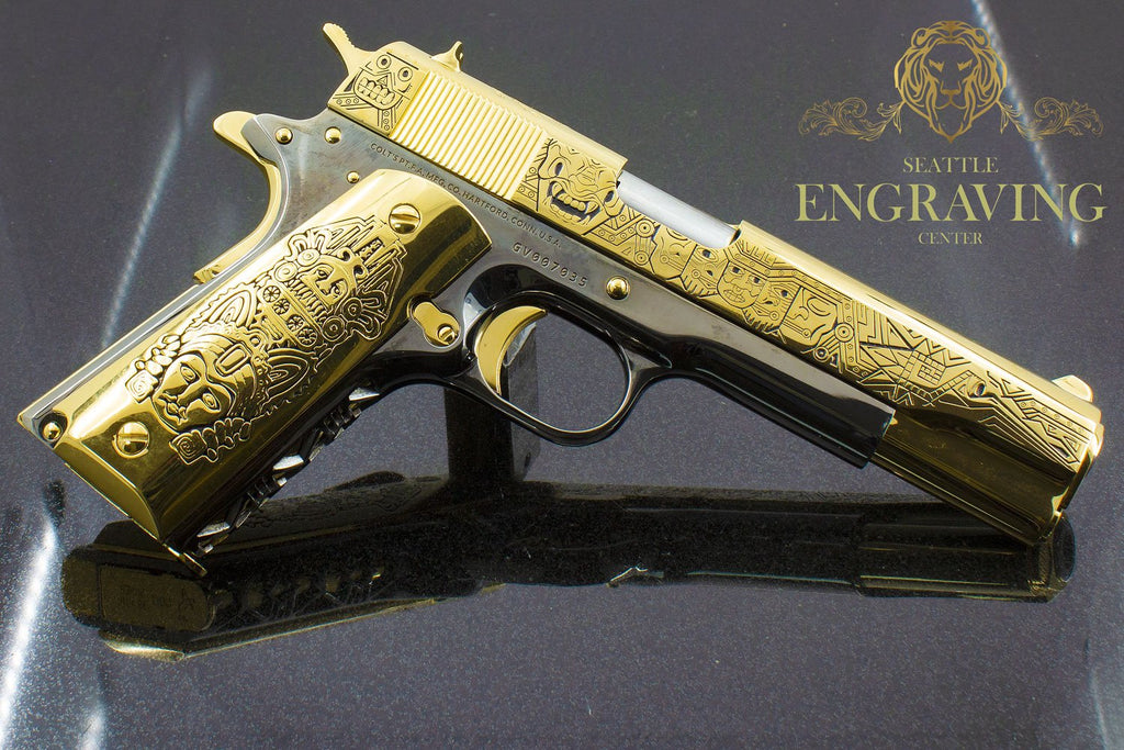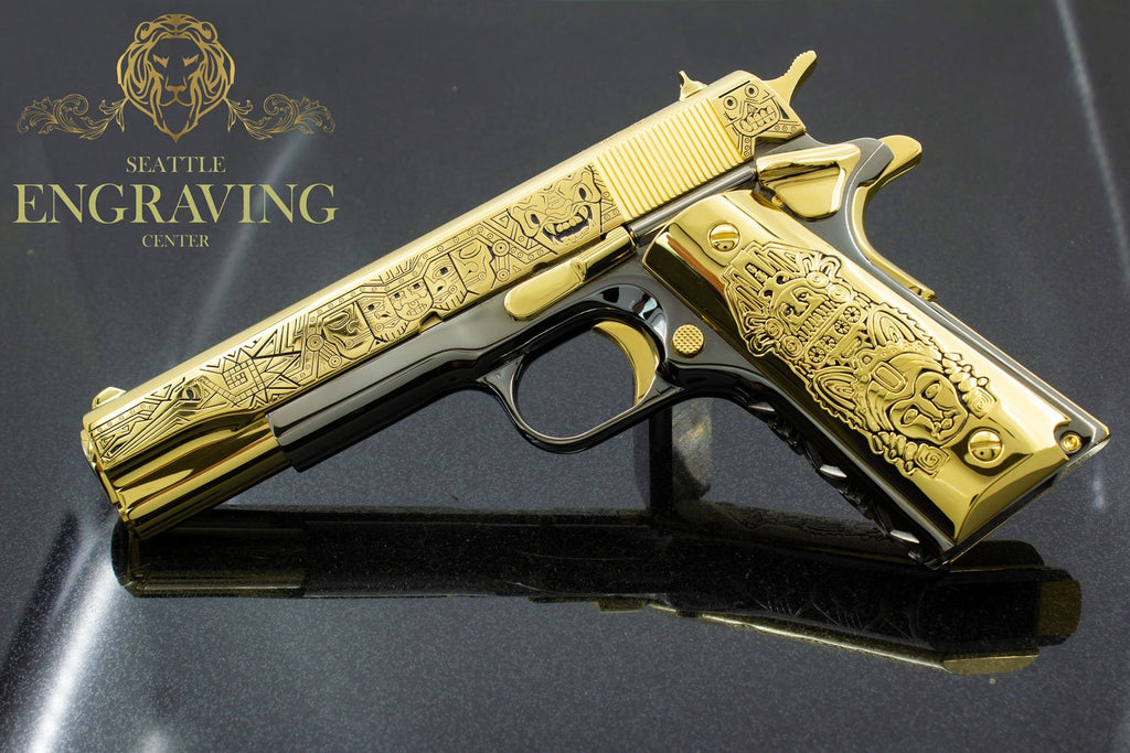 Buy COLT 45ACP, “EL JEFE DE JEFES” Design, 24K GOLD & Black Chrome *** HOT *** online | COLT 45ACP, “EL JEFE DE JEFES” Design, 24K GOLD & Black Chrome *** HOT *** for sale