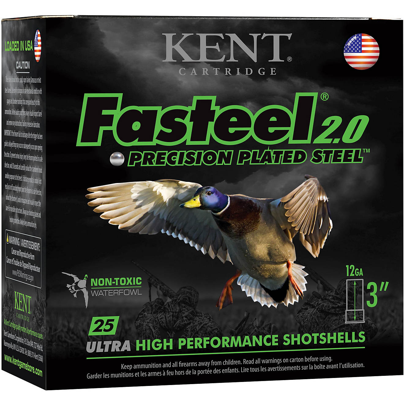 Hunt for waterfowl with the KENT Fasteel 2.0 12 Gauge #4 Shotshells. The high-performance base wad allows for fast followup shots and consistent performance, while the precision ground zinc-plated steel shot and nickel-plated heads protect against corrosive damage. The custom blended powders help manage felt recoil.
