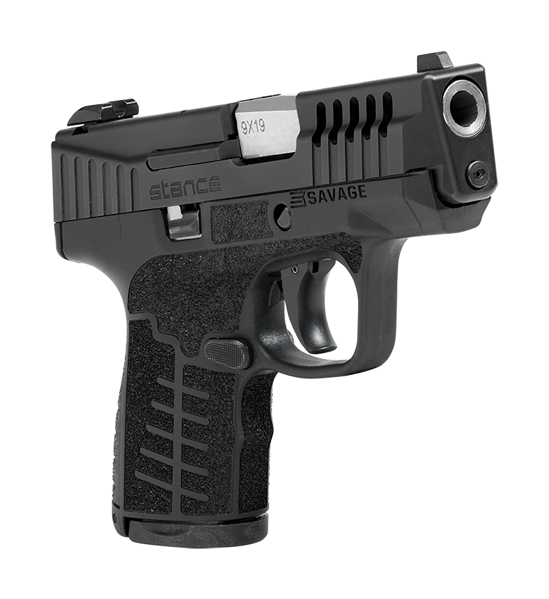 The Savage Stance refines the micro-nine into a thin, easily concealable pistol that is built to be both functional in the hand as it is easy to conceal. With its aggressive surface textures, advanced slide serrations and ergonomic grip, Stance is designed to be comfortable when holstered and formidable when it needs to be. There’s a new option for everyday carry. Stance is Savage.